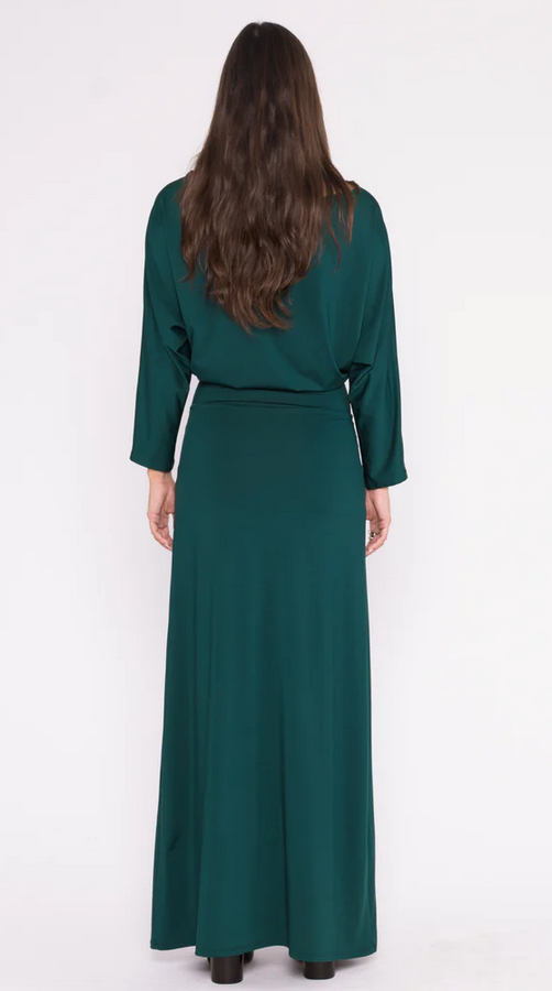 This throw-on-and-stun silhouette is crafted from luxurious jersey with a luminous sheen that drapes and flows like liquid. The long, fluid cut and minimalist lines create a modern shape that feels as effortless as it looks.