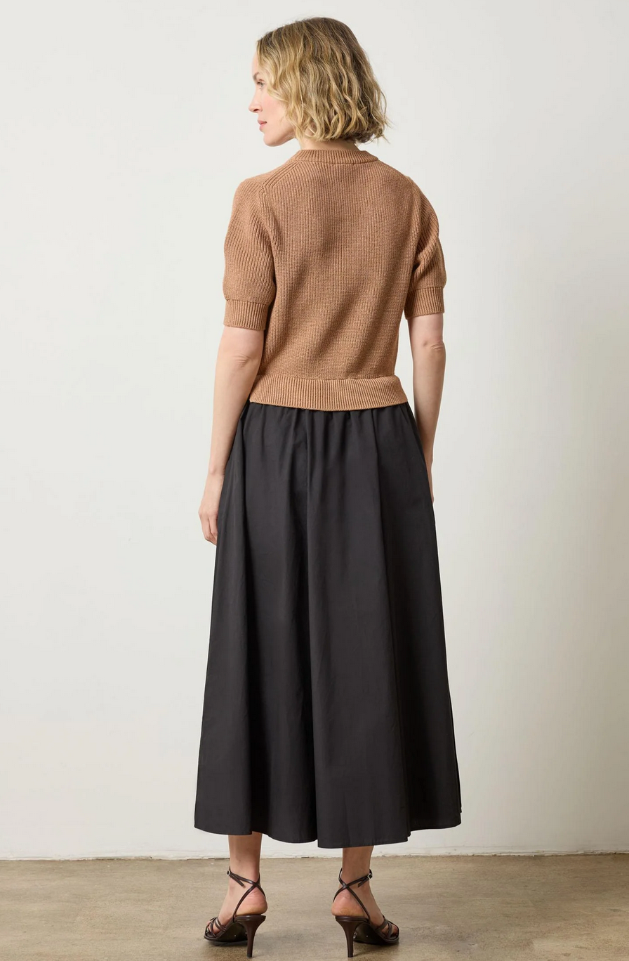This Mixed Media Dress combines the comfort of knit with polished poplin for an effortless one-and-done look. The sweater is knit in mid-weight eco-cotton blend yarn. Intricate stitch details and a classic crew neckline give the short sleeve sweater a classic feel. The attached poplin skirt is crisp and looks beautiful with the knit. Whether worn with sandals, sneakers, or heels, it's an easy go-to for any occasion. Shop local at Tumbleweed Boutique on Alberta Street in Portland, Oregon or shipped to your door in a few days.