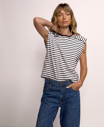 Oyun Modern Striped Tee in Light Mauve Stripe,
