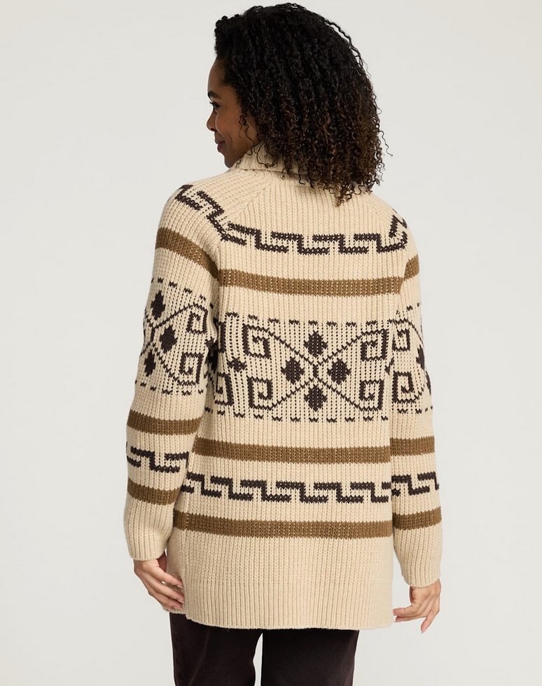 By customer request! Pendleton has taken a bestselling sweater, made famous in "The Big Lebowski," and fashioned it into a flattering, longer-length version. Like the original, this women's Westerley Cardigan is knit of thick, warm lambswool and features two pockets plus a two-way zipper. Shop local at Tumbleweed Boutique on Alberta Street in Portland, Oregon or shipped to your door in a few days.