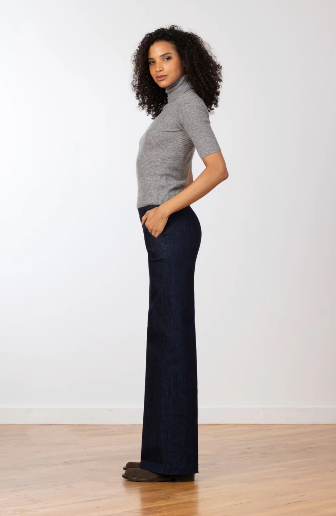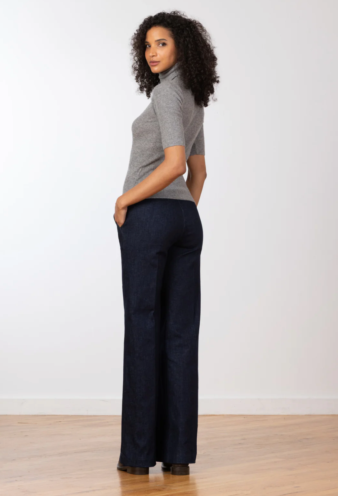 The Carla style is a full length palazzo-style pant with pockets. Palazzo pants are supremely comfortable because of their wonderfully loose cut, which allows the legs to swirl around you as you walk and gives a graceful flare to your figure. A classic, stretchy, denim made to be worn everyday. Shop local at Tumbleweed Boutique on Alberta Street in Portland, Oregon or shipped to your door in a few days.