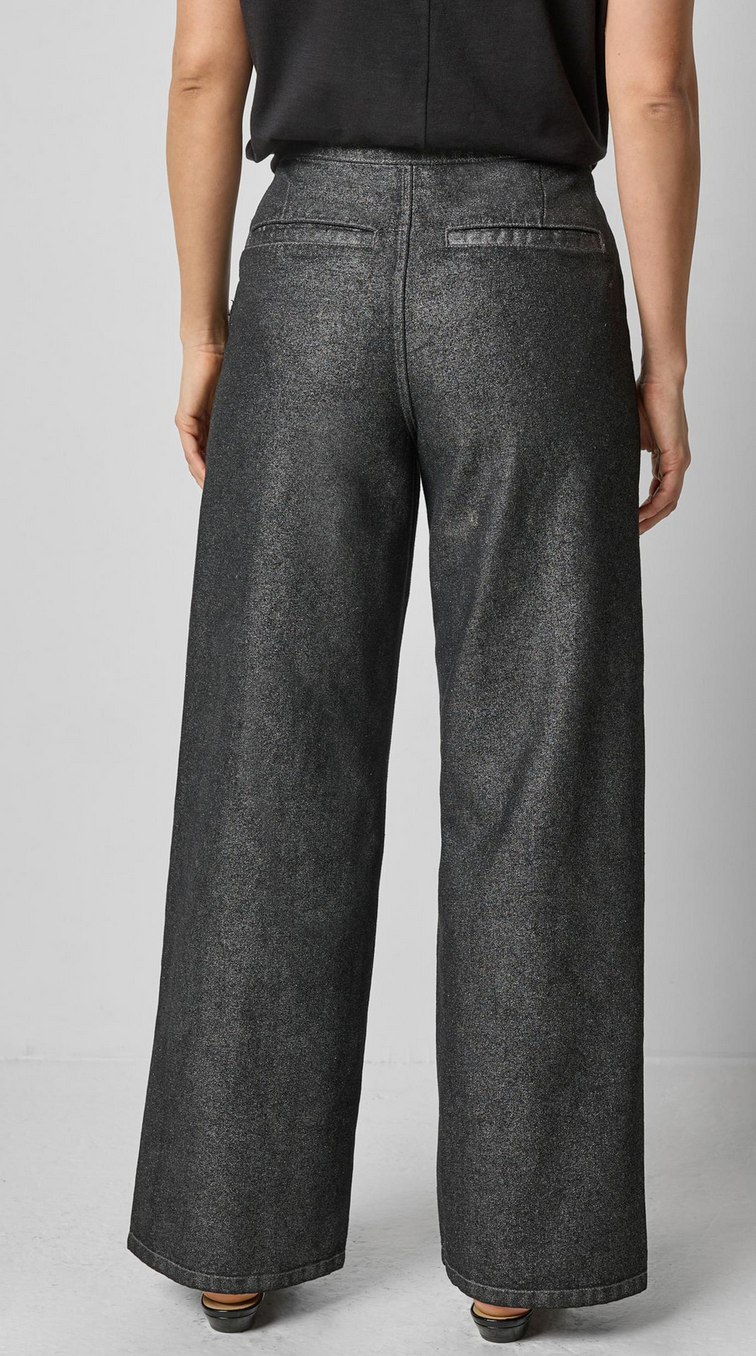 The Metallic Pant is a sleek, full-length style that brings a festive update to classic denim. Made of non-stretch metallic denim with a subtle sparkle, this pant features a clean, plain-front design and a straight-leg silhouette for a polished look. A side zip with an exposed zipper adds a modern edge. Pair it with anything from a crisp button-down to a chunky sweater for the perfect holiday outfit. Shop local at Tumbleweed Boutique on Alberta Street in Portland, Oregon or shipped to your door in a few days.