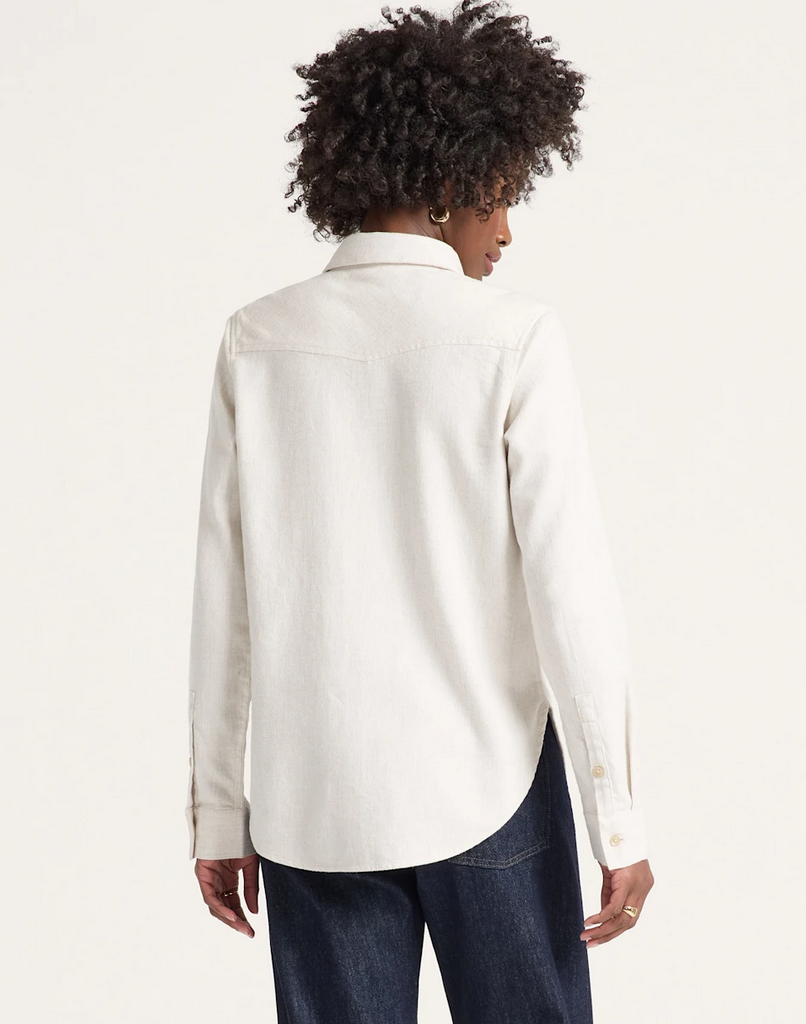 This all-season shirt is made of ultra-soft, double brushed cotton flannel, which is brushed on both sides for a velvety soft feel and lasting durability. Designed with a relaxed fit, it features a spread collar, button front and cuffs, and a classic curved shirttail hem, making it ideal for layering or wearing on its own. Shop local at Tumbleweed Boutique on Alberta Street in Portland, Oregon or shipped to your door in a few days.